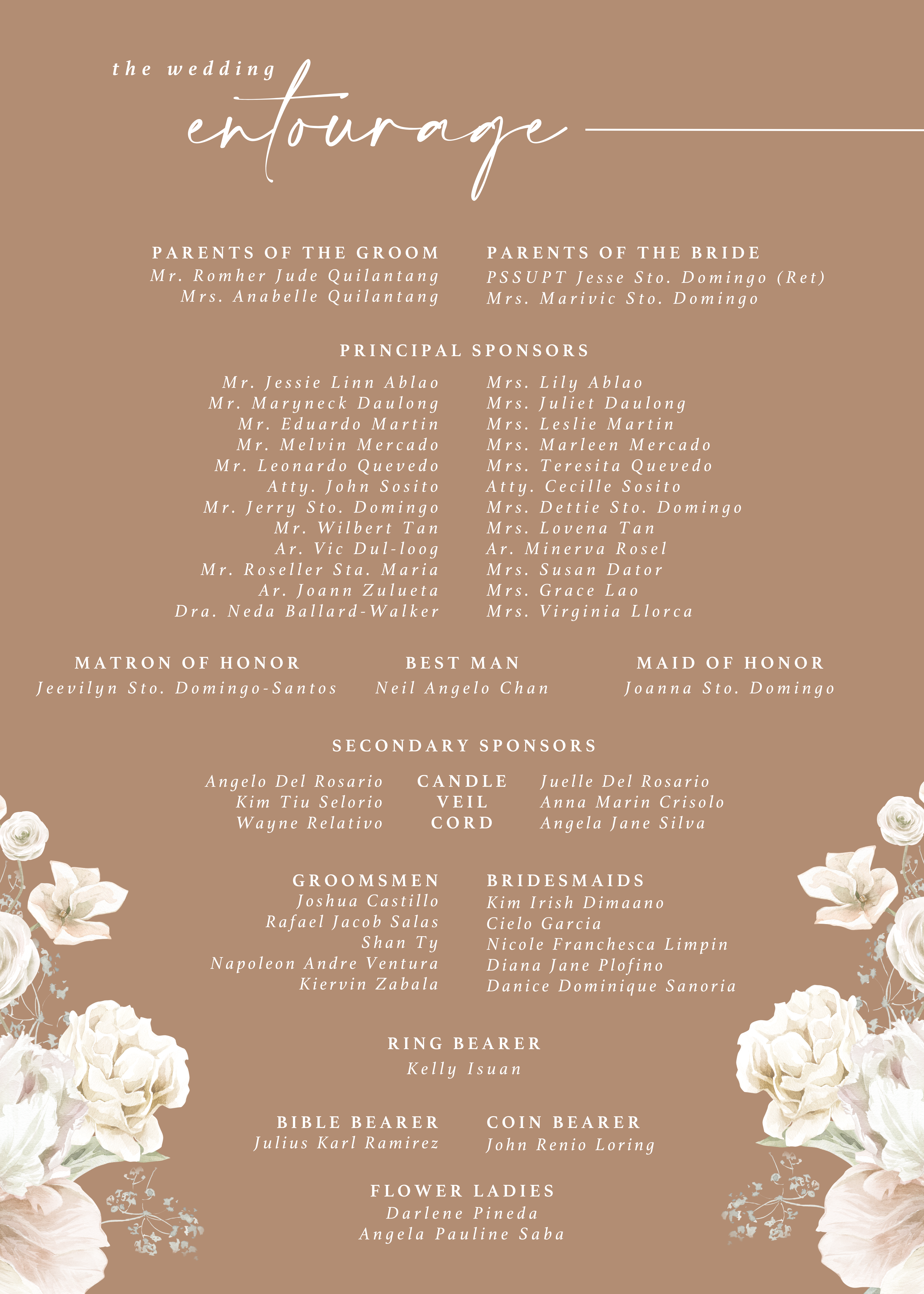 Please be at the venue 30 mins before the ceremony starts. We'd love to see you as we walk down the aisle!
